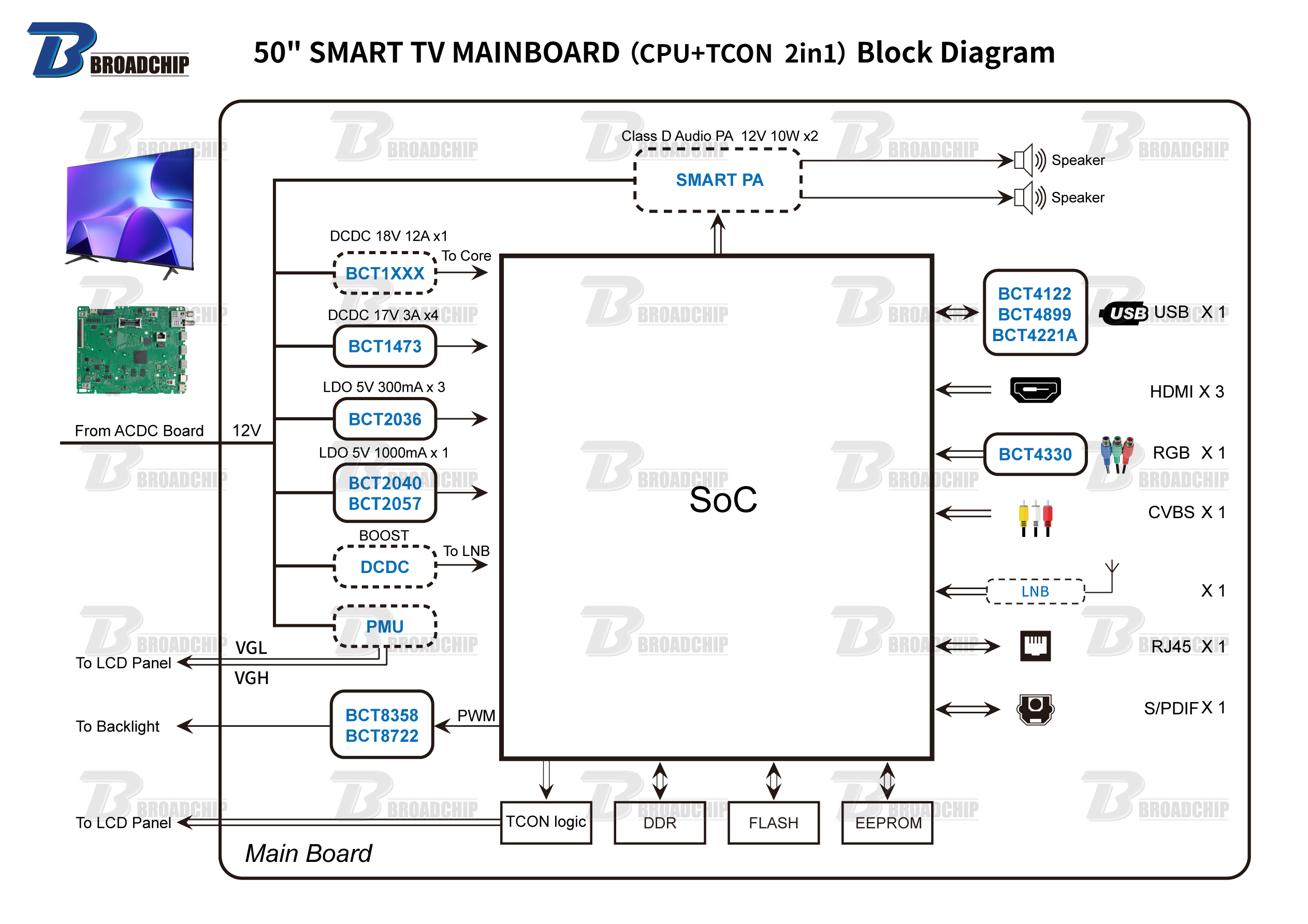 50'' SMART TV MAINBOARD(CPU+TCON 2in1)Block Diagram